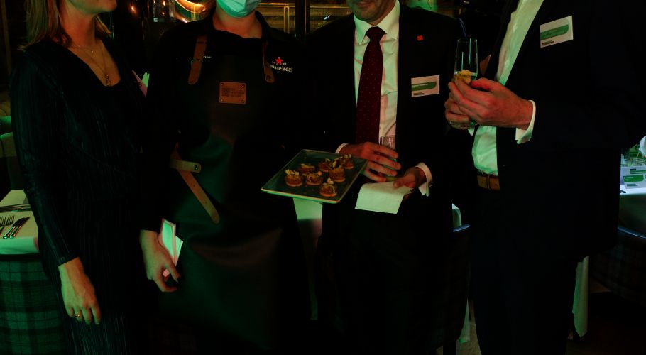 Held in the Ardnamurchan Scottish Restaurant & Pub, the dinner was a truly front-running event with carefully sourced ingredients, demonstrating the sustainability choices that are all around us. Every aspect of the evening had a story behind it; even the menu included a carbon footprint calculator, allowing guests to understand the impact of their choices. The canapés were presented by Unilever’s The Vegetarian Butcher, ‘bringing new meat to the (conference) table!’ and addressed the elephant in the room when it comes to the carbon footprint of our food. Drinks came in low-carbon Heineken bottles, produced using biofuel and made from 95% recycled glass to reduce their carbon emissions during production. Guests at the dinner were among the first to see the new Heineken bottle!