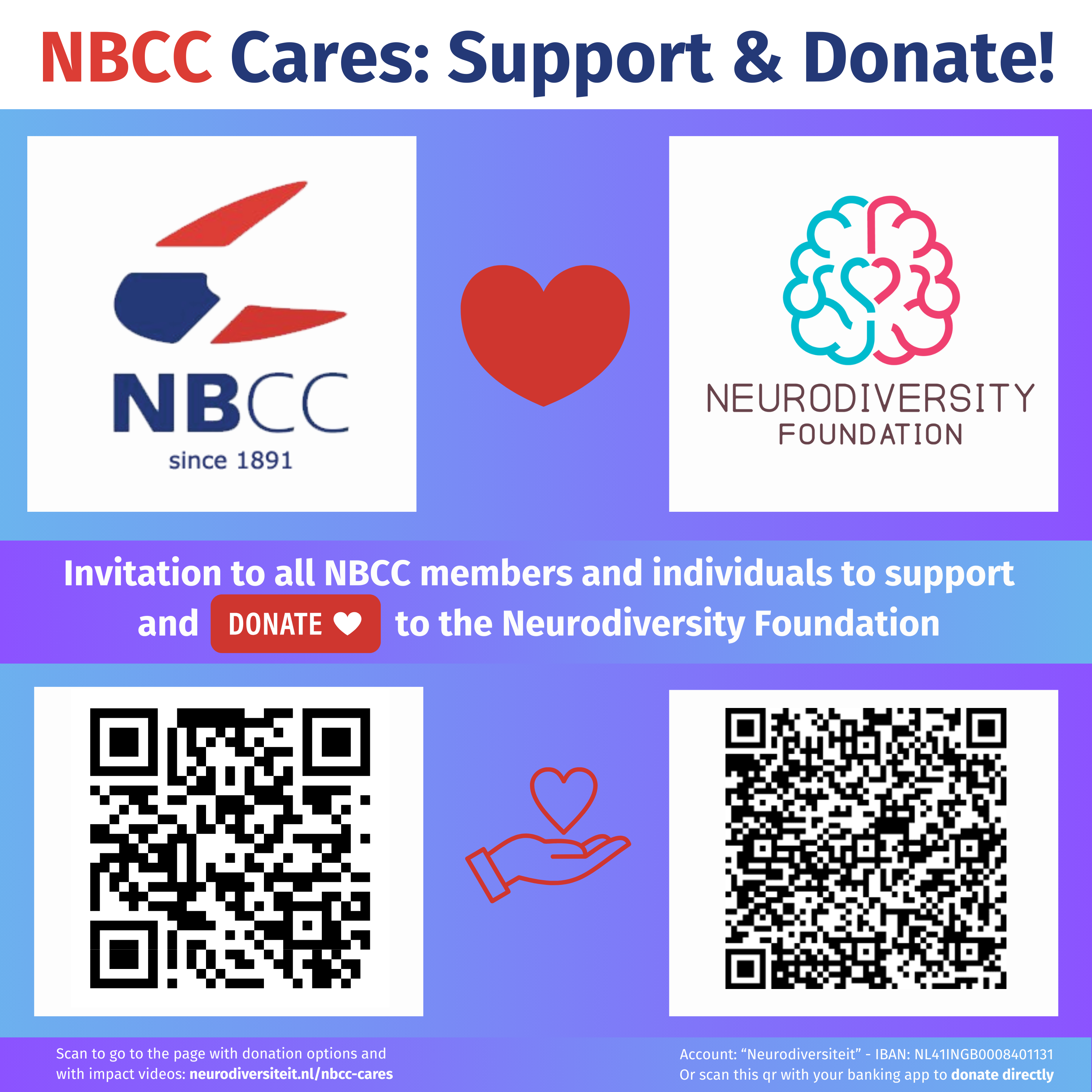 You may also donate via Benevity or by using a QR code with your banking app, find more information on the page: neurodiversiteit.nl/nbcc-cares.